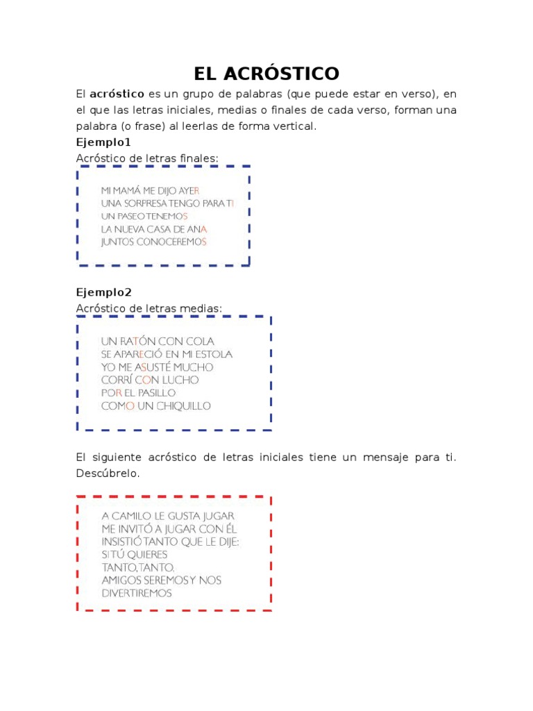 Caracteristicas Principales De Un Acrostico