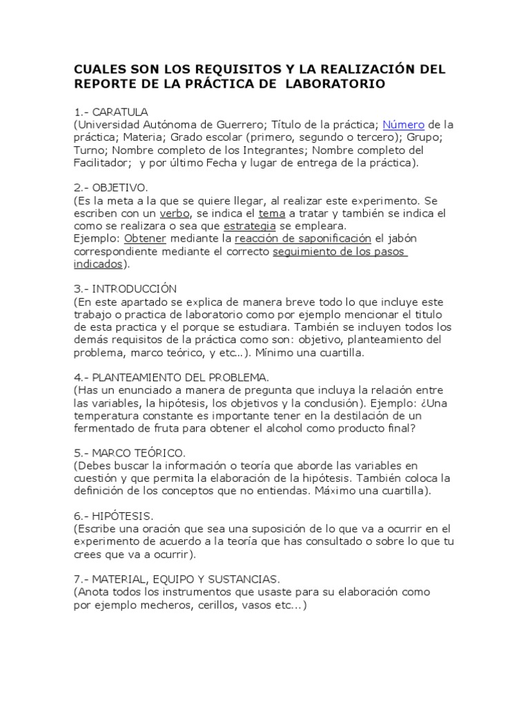 Como Hacer Un Reporte De Laboratorio Ejemplo