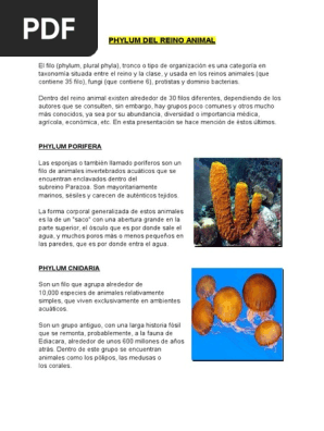 Phylum Del Reino Animal Pdf Esponja Organismos