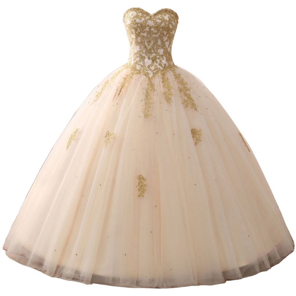 Compre Dorado Applique Quinceanera Vestidos Blanco Tul Debutante Bola Vestido Vestidos De Fiesta Largos Vestidos De 15 Anos Masquerade Vestido Dulce 16 Vestidos A 111 38 Del Queenfashion Es Dhgate Com