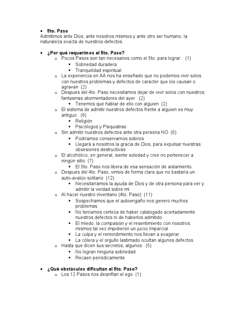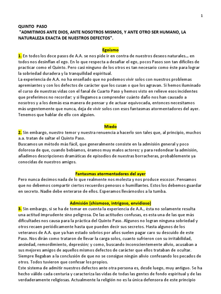 Quinto paso de aa explicado. Si aún no lo tienes éste es un buen momento para encontrar alguien que pueda orientarte. Copyright 1991 by Alcoholic. Un esfuerzo sincero es todo lo que se necesita.
