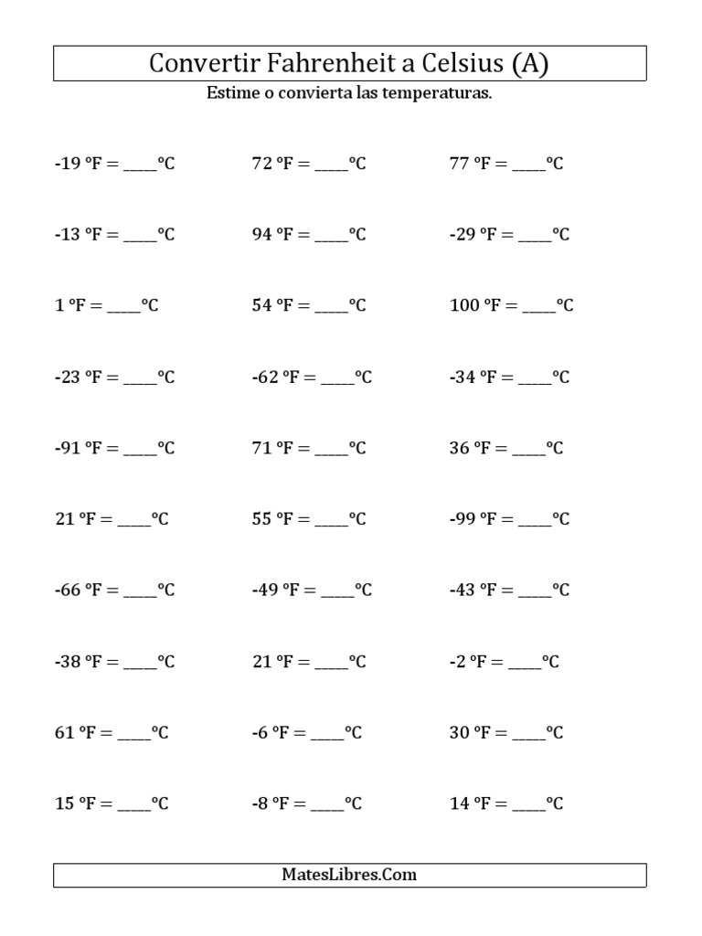 Temperatura Convertir Fahrenheit Celsius Negativo Todo Pdf
