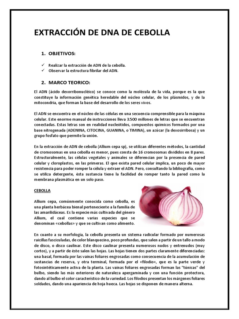 Extraccion De Dna De Cebolla Pdf Biologia Bioquimica